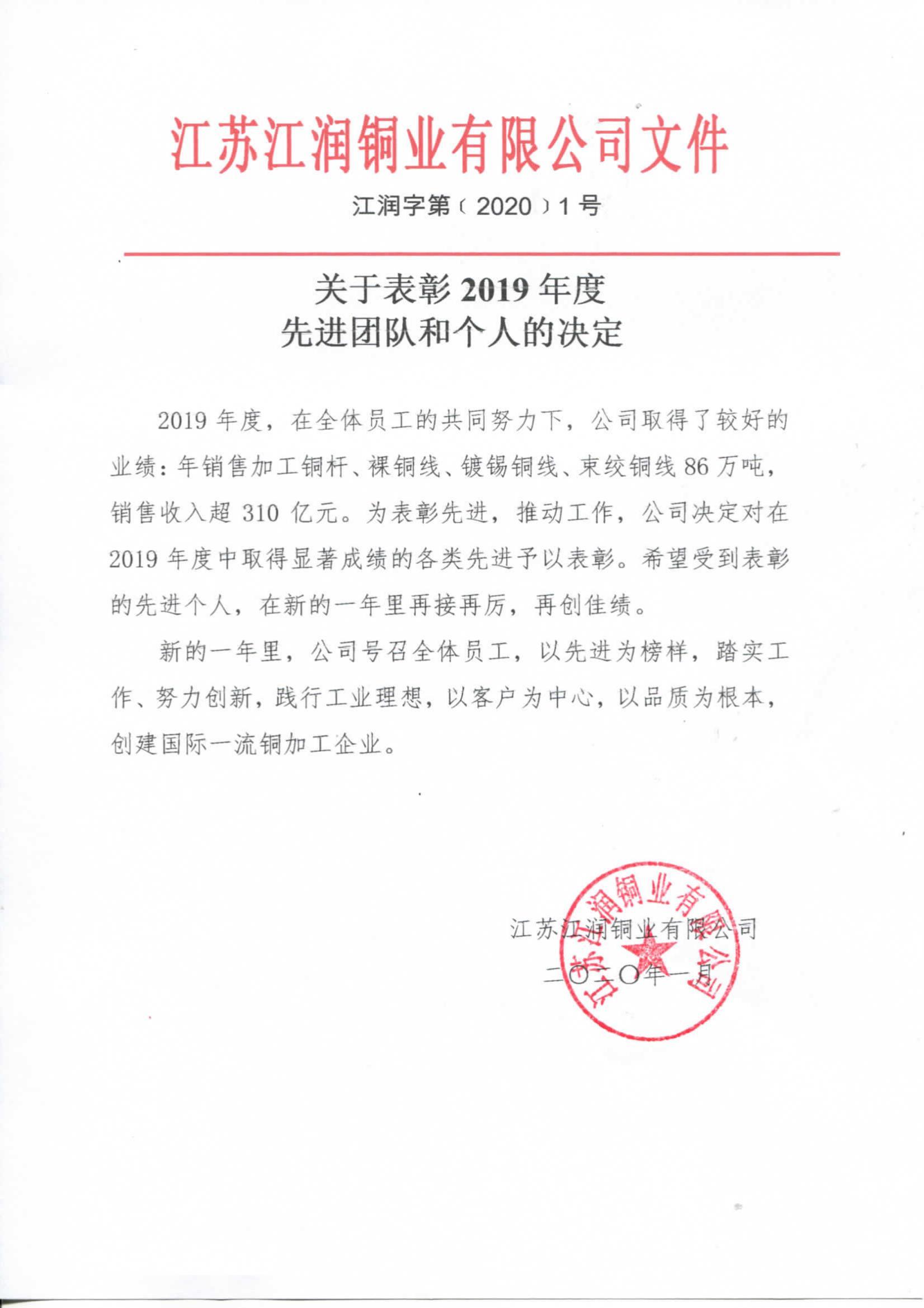 2019年度江潤銅業先進表彰